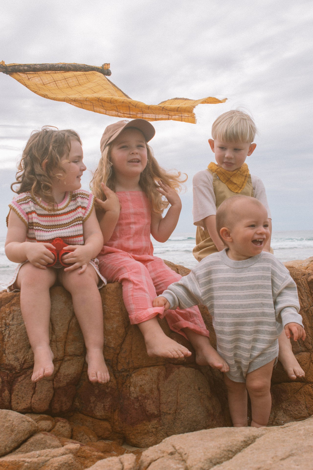 A lightweight summer essential made from 100% cotton. Designed in a woven check with a soft seersucker finish, this playsuit features elastic straps for comfort and ease. The breathable fabric makes it perfect for warm-weather play and everyday wear. A timeless kids’ playsuit for effortless, all-day comfort.