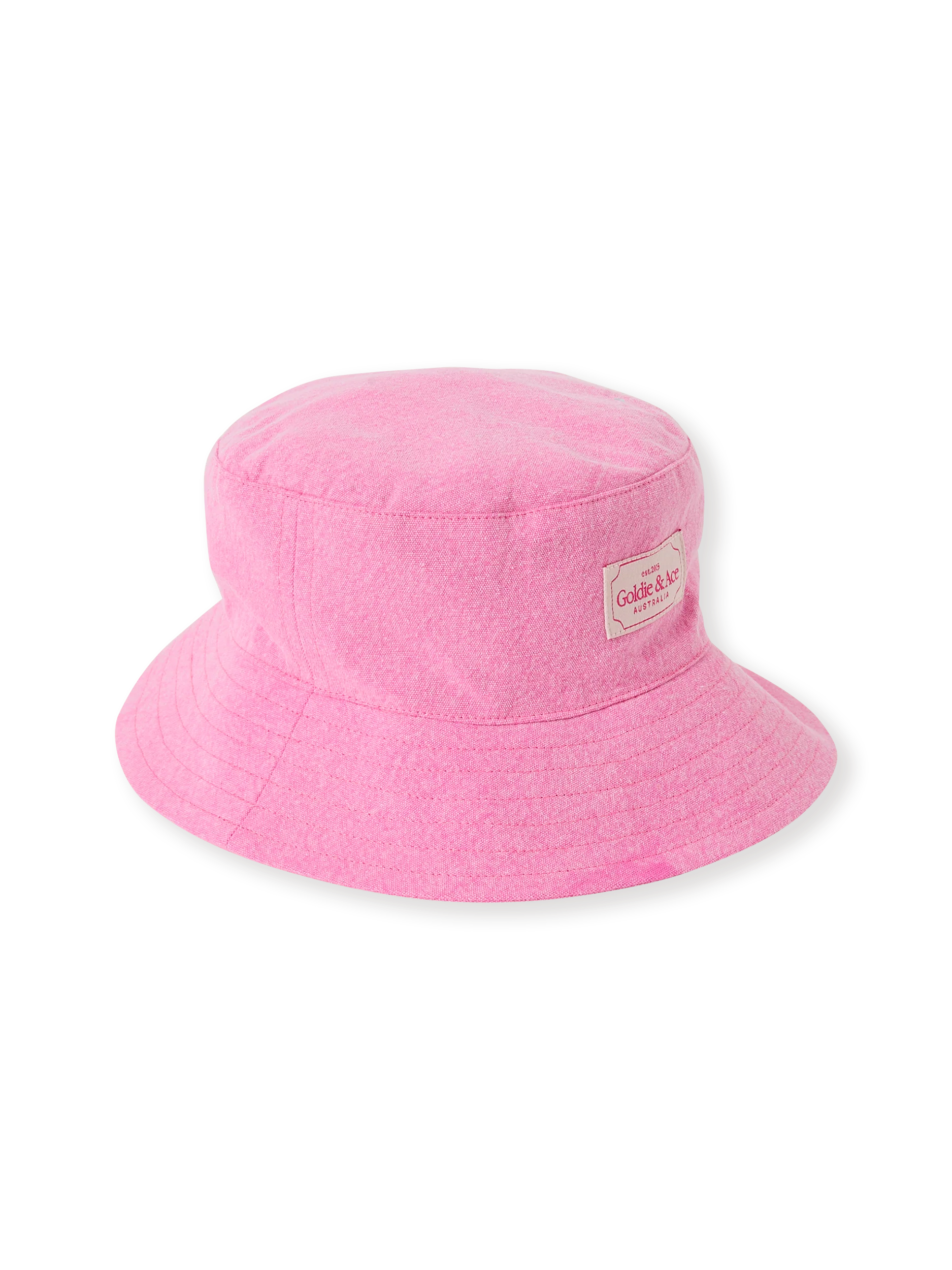 A classic bucket hat in vintage washed, bright pink denim – made to match (or mix) with all their fave outfits from Days of Play.