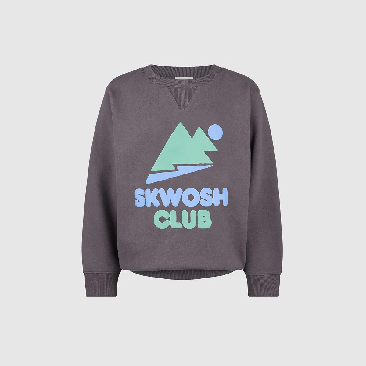 Relaxed fit for all-day comfort 'Chunky Mountain' puff print across chest Cosy brushed fleece interior Ribbed hem, cuffs and neckline Cool carbon colourway for everyday wear Perfect for layering on outdoor adventures.