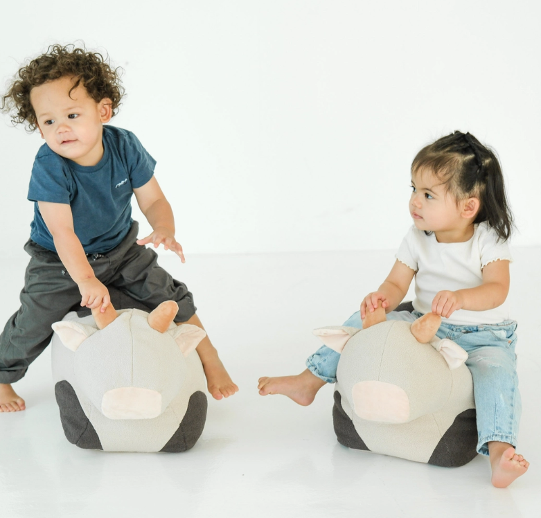 Say Moo Moo! to our adorable Cow Pouffe—part ride-on toy, part cozy cushion, and all-around fun! Designed for imaginative play and motor skill development, this soft and sturdy pouffe is perfect for toddlers learning to balance, climb, and explore.