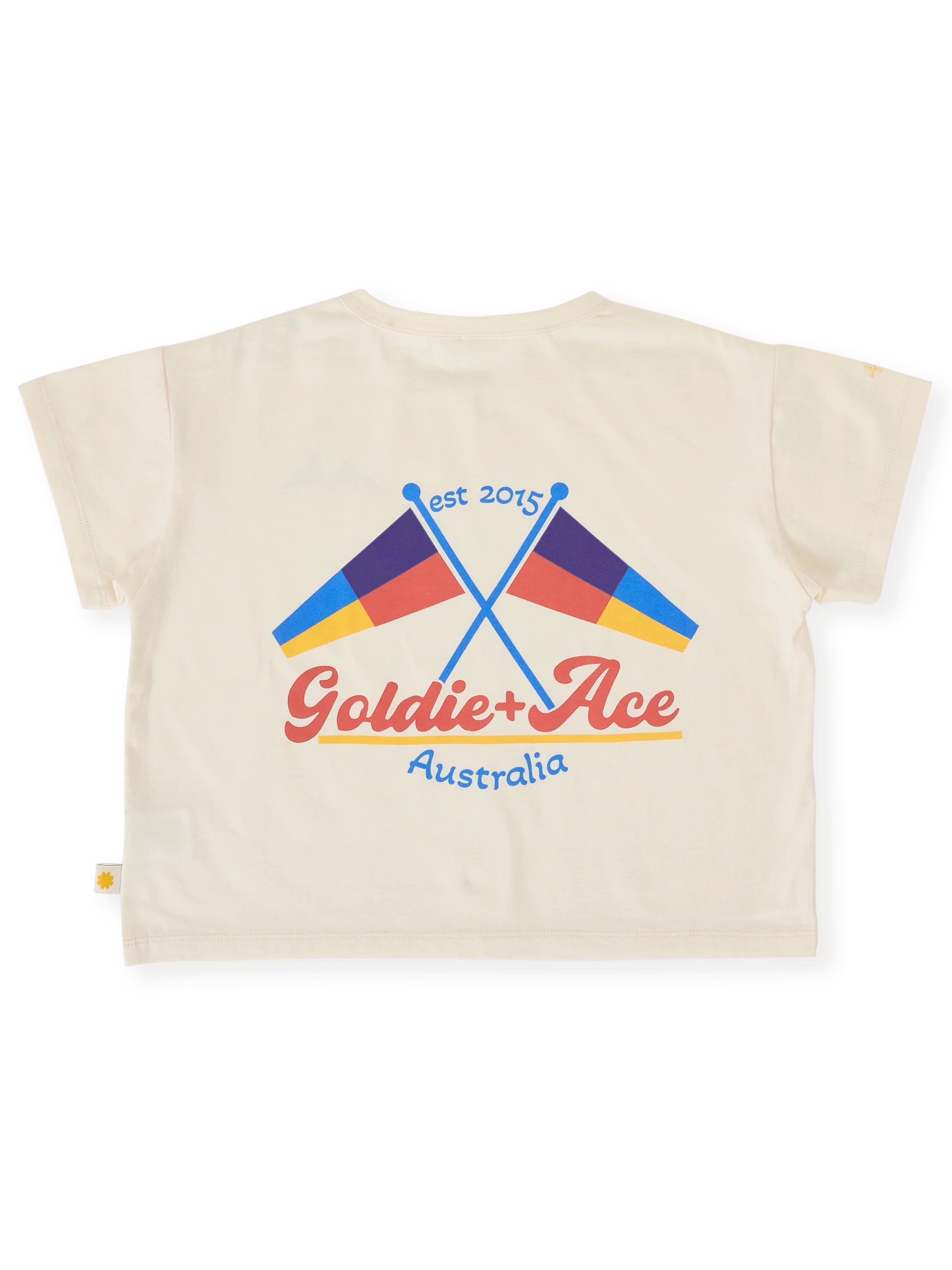 An easy, oversized white t-shirt with a fun flag design that adds a little seaside spirit.