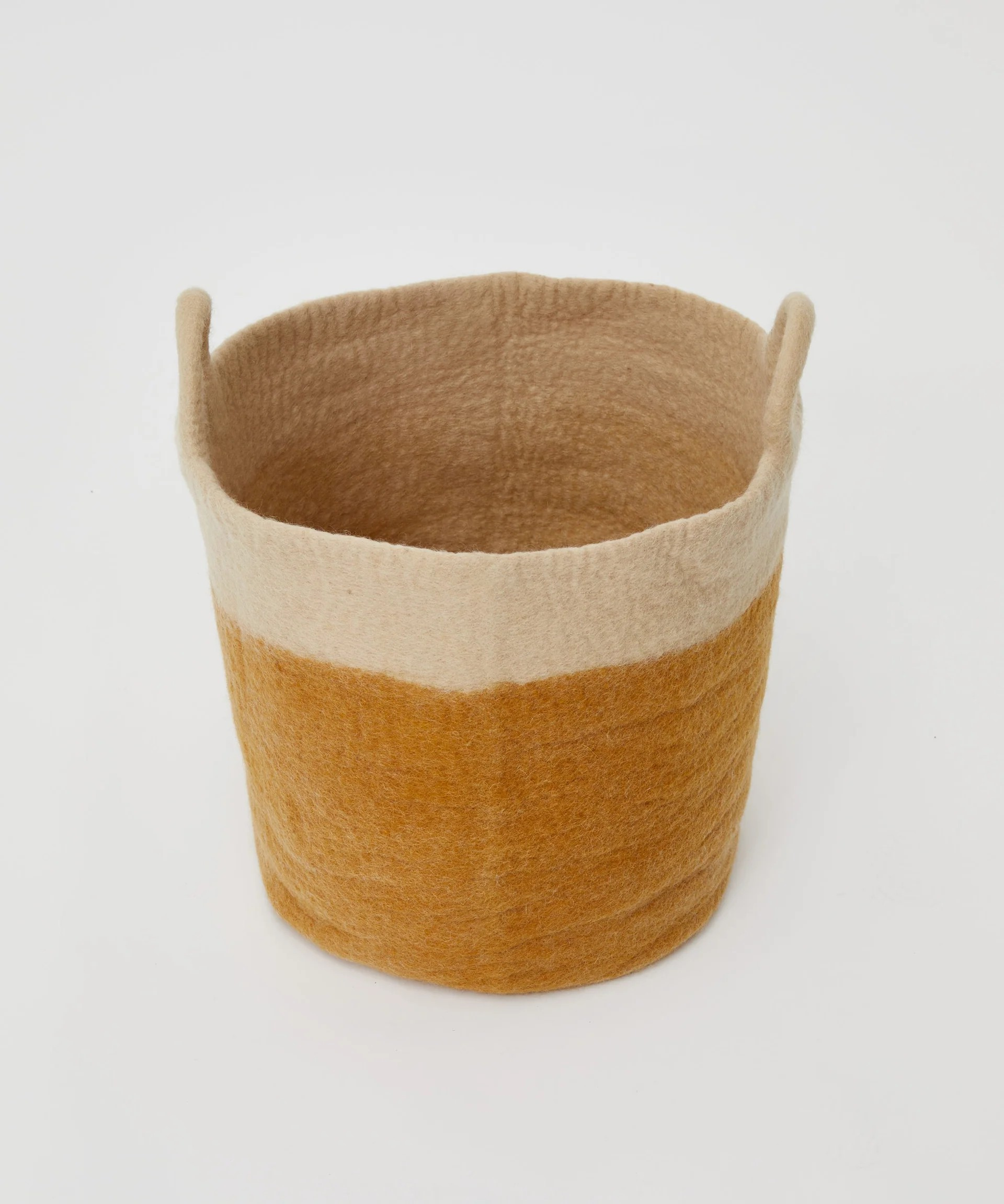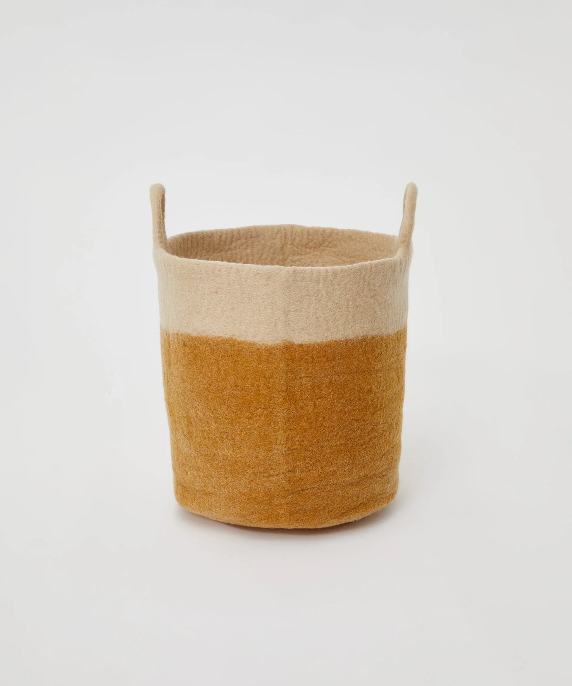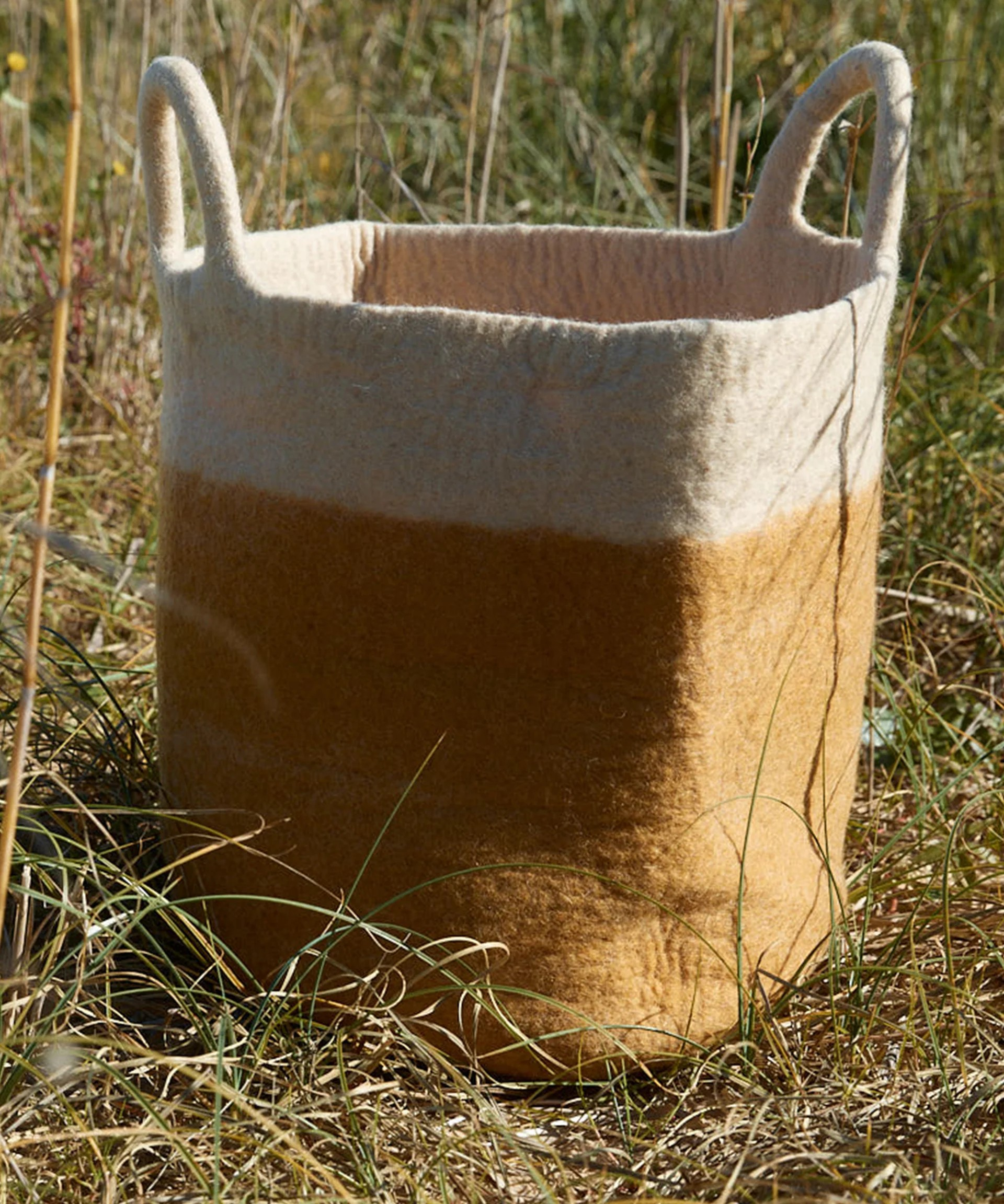The considered design uses ethically sourced, hypoallergenic materials. Each basket is ethically hand made from 100% felt wool, using food safe dyes that are safe for babies and pets.