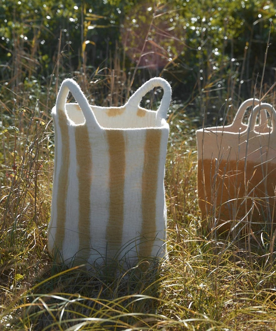 The considered design uses ethically sourced, hypoallergenic materials. Each basket is ethically hand made from 100% felt wool, using food safe dyes that are safe for babies and pets.